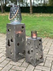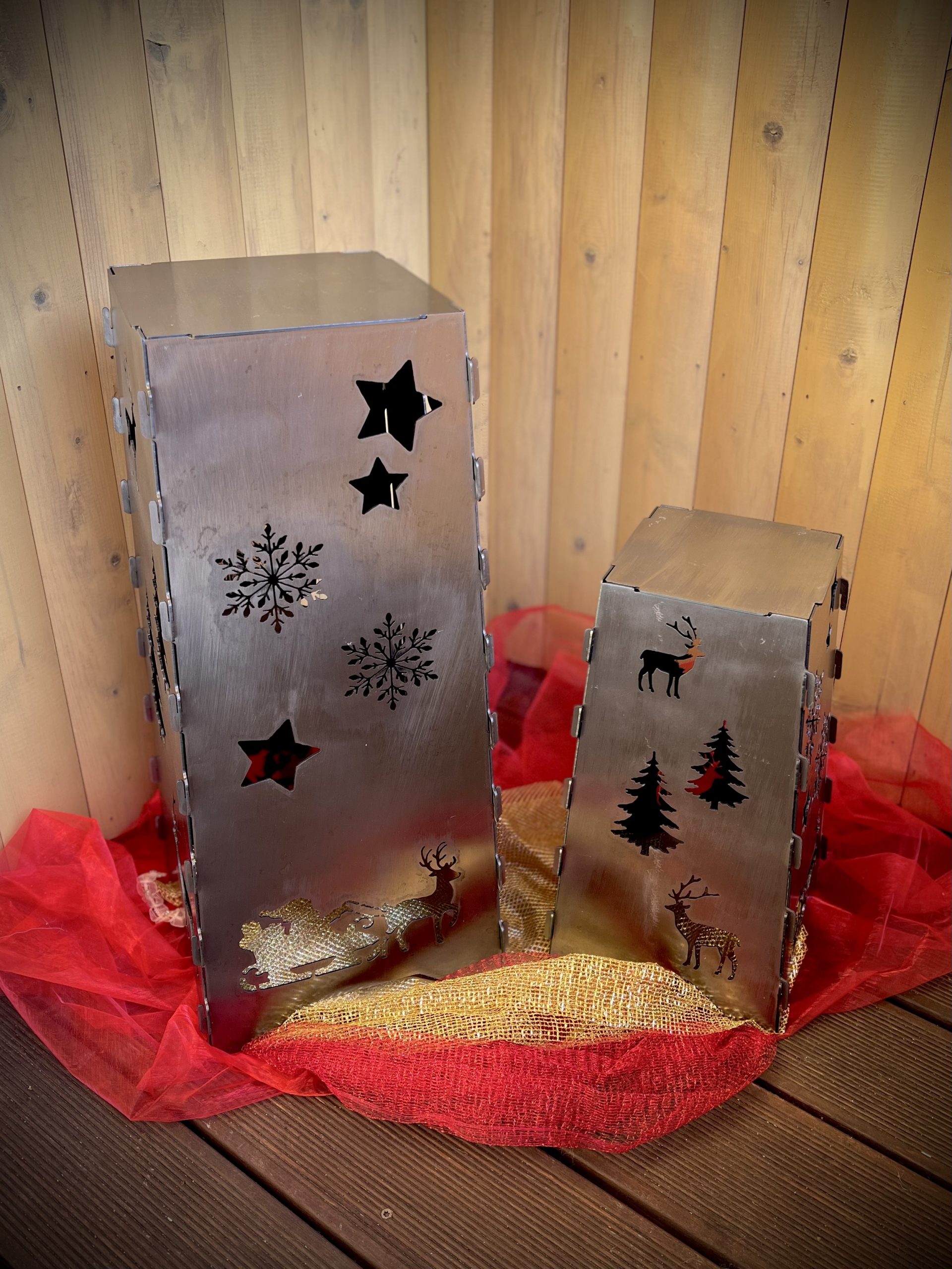 Dekosäulen aus 2mm Stahlblech mit Weihnachtsmotiven.